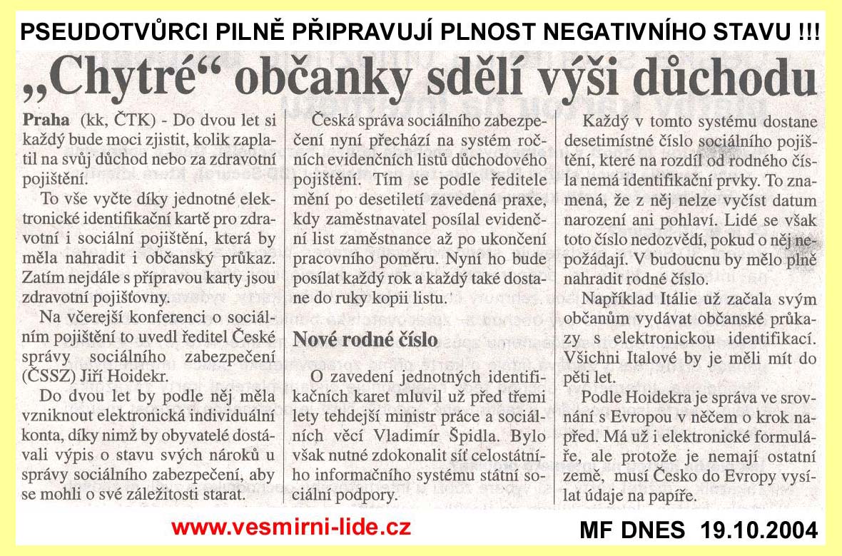 "Chytré" občanky sdělí výši důchodu |