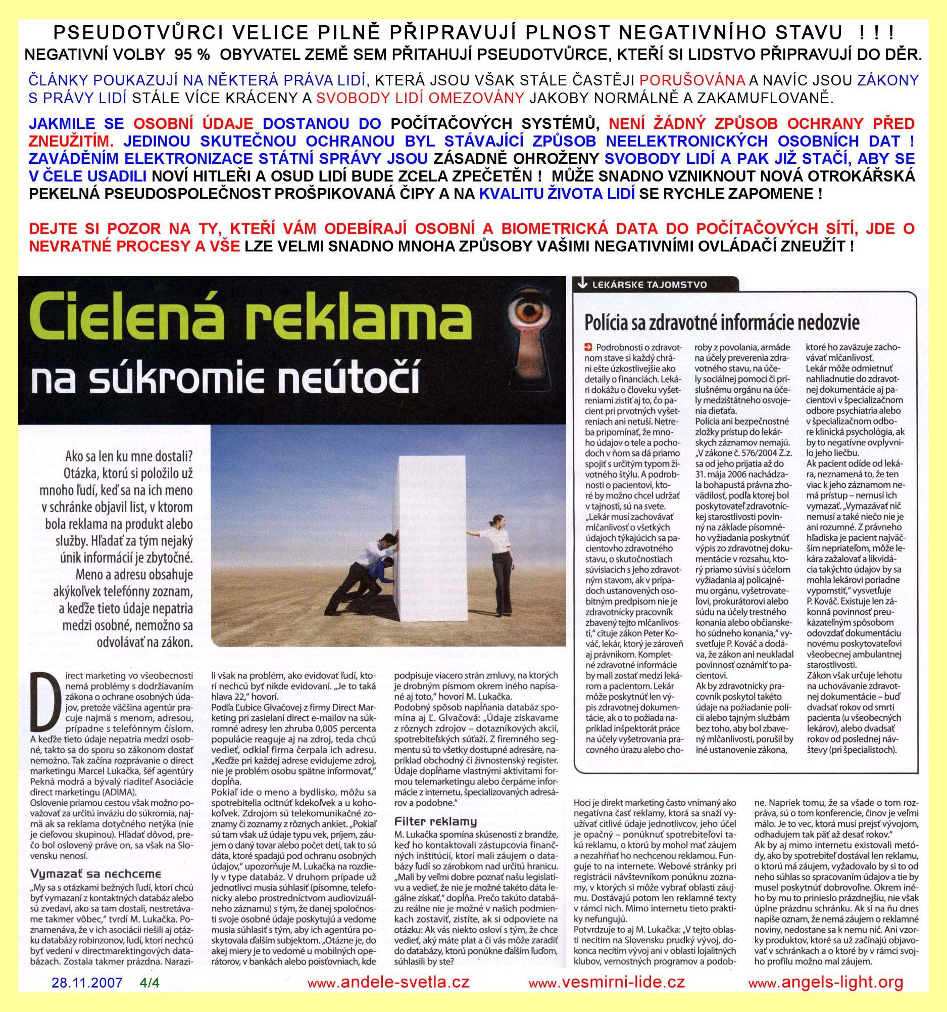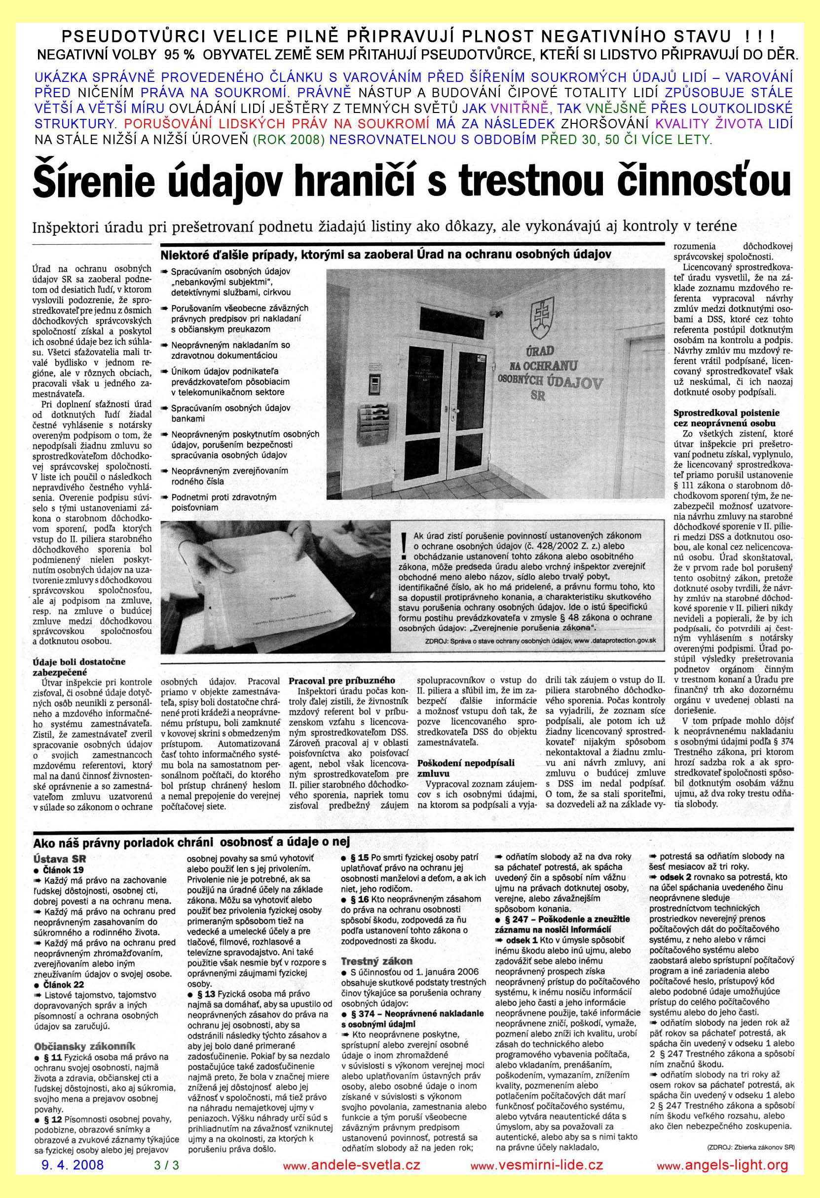 REDAKCE MAJÍ POVINNOST PUBLIKOVAT I NÁZORY, S NIMIŽ NE VŽDY SOUHLASÍ. SVOBODA PROJEVU, ZEJMÉNA SVOBODA TISKU, JE ZARUČENA ÚSTAVOU ČR, MEZINÁRODNÍM PAKTEM O OBČANSKÝCH A POLITICKÝCH PRÁVECH PUBLIKOVANÉ VE VYHLÁŠCE MZV Č. 120/196 SB. A LISTINOU ZÁKLADNÍCH PRÁV A SVOBOD VYHLÁŠENOU POD Č. 23/1991 SB. SVOBODA PROJEVU A PRÁVO NA INFORMACE JSOU ZÁKONEM ZARUČENY. KAŽDÝ MÁ PRÁVO VYJADŘOVAT SVÉ NÁZORY SLOVEM, PÍSMEM, TISKEM, OBRAZEM NEBO JINÝM ZPŮSOBEM, JAKOŽ I SVOBODNĚ VYHLEDÁVAT, PŘIJÍMAT I ROZŠIŘOVAT IDEJE A INFORMACE. CENZURA JE NEPŘÍPUSTNÁ.
